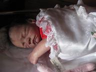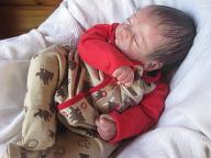 vauvanukelle. Hiukset ovat tuuheat ja hienoisesta silk mohairista