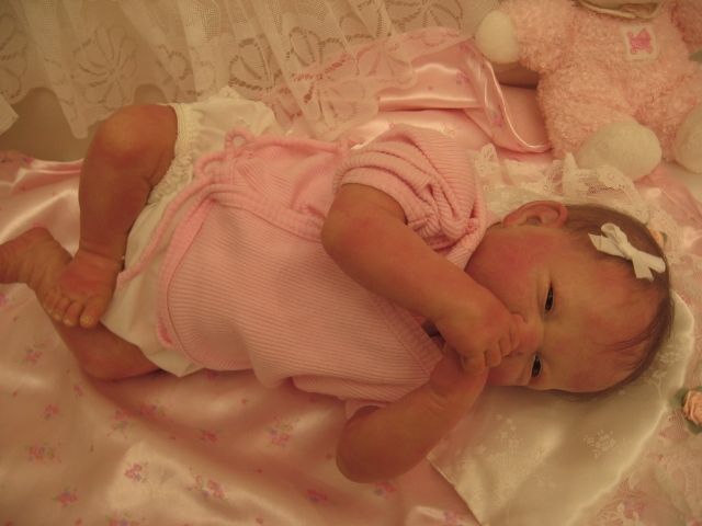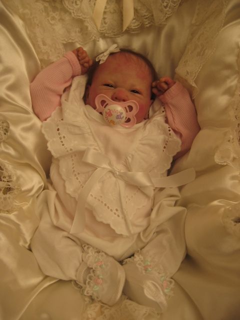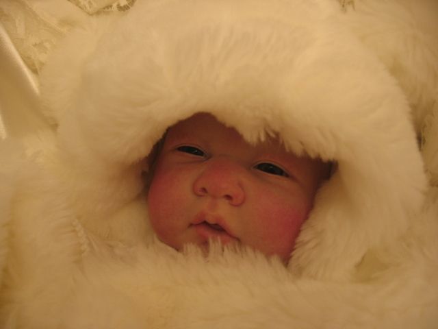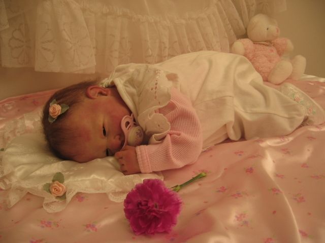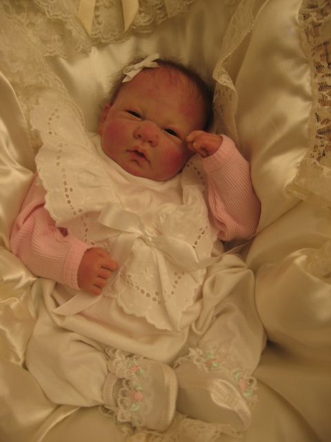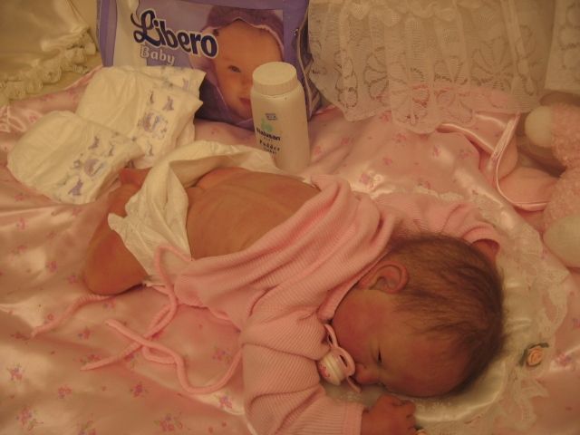 Loppusilaukseksi Josefiina sai pieniin kynsiin värjäyksen puolikuineen ja silmänurkkiin kosteutta lakalla, syventämään vauvamaista katsetta.