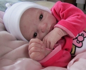 Josette sai värjäyksensä 3 d -tekniikalla. Tämän pienen reborntyttövauvanuken