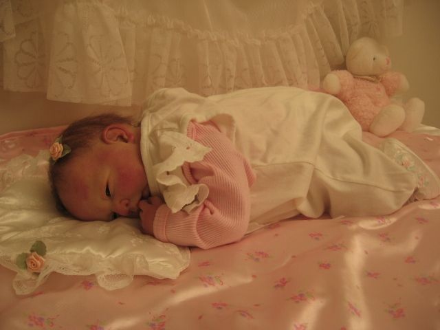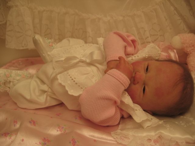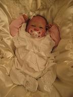Loppusilaukseksi Josefiina sai pieniin kynsiin värjäyksen puolikuineen ja silmänurkkiin kosteutta lakalla, syventämään vauvamaista katsetta.