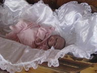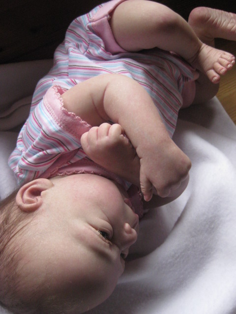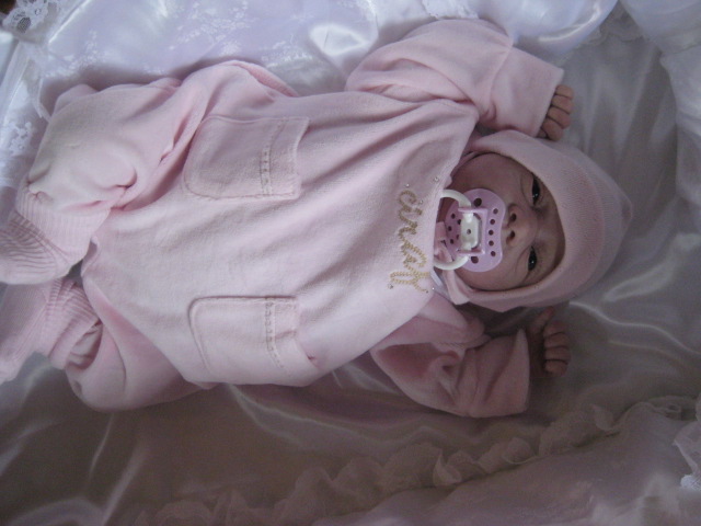 Painotus vastasyntyneen. Ihana tyttövauvanukke käsitellä! Tuskin malttaa laskea